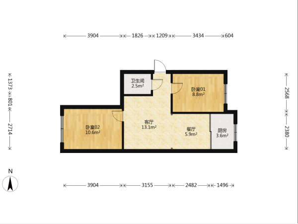 2室2 廳/55.39平米