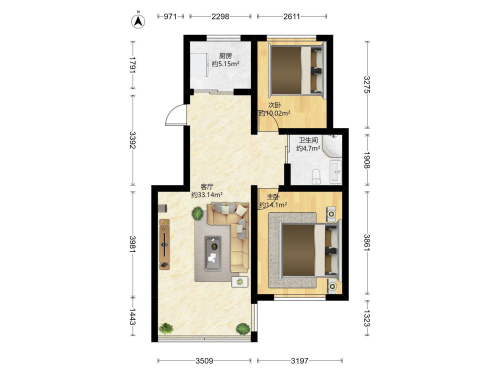 房屋戶型: 2 室2廳 1 廚1衛