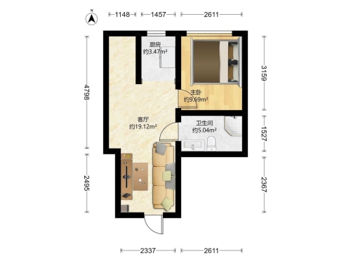 房屋戶型: 2 室1廳 1 廚1衛